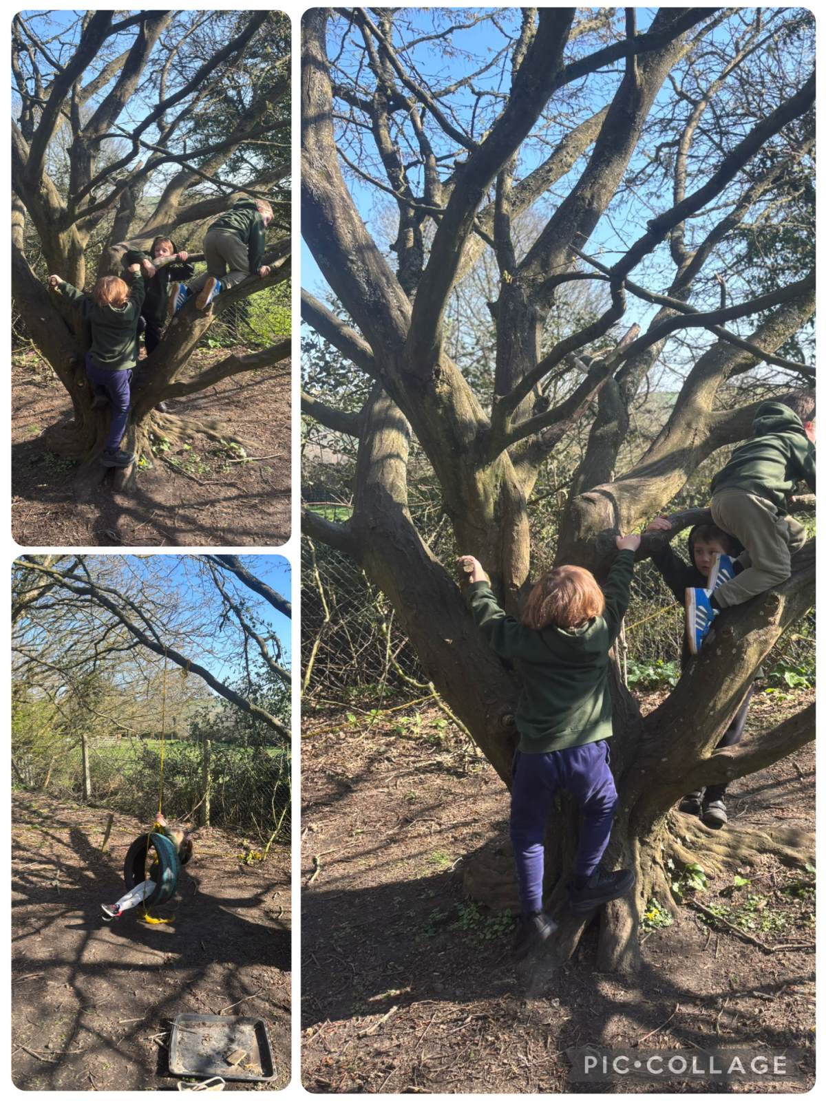 This year in Forest school the children are working on lots of different skills. They are building confidence in nature, this includes exploring in the forest and following the safety rules. They have started to attempt to climb the trees and the rope equipment which is all tangling from the trees and not on stable ground.