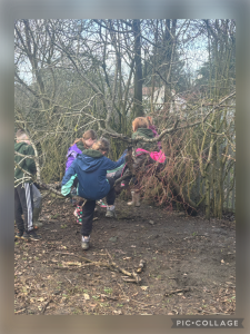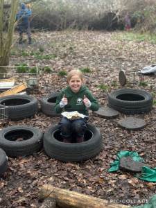 The children have been building confidence and skills through hands‑on outdoor learning, creating fire, whittling wood, climbing trees, and enjoying imaginative play in the forest. They have also had some exciting wildlife encounters, with visits from deer, a mouse, and even some rabbits. A particular highlight has been roasting marshmallows over the fire, and the children are now looking forward to the next step—cooking their own food on the fire very soon.