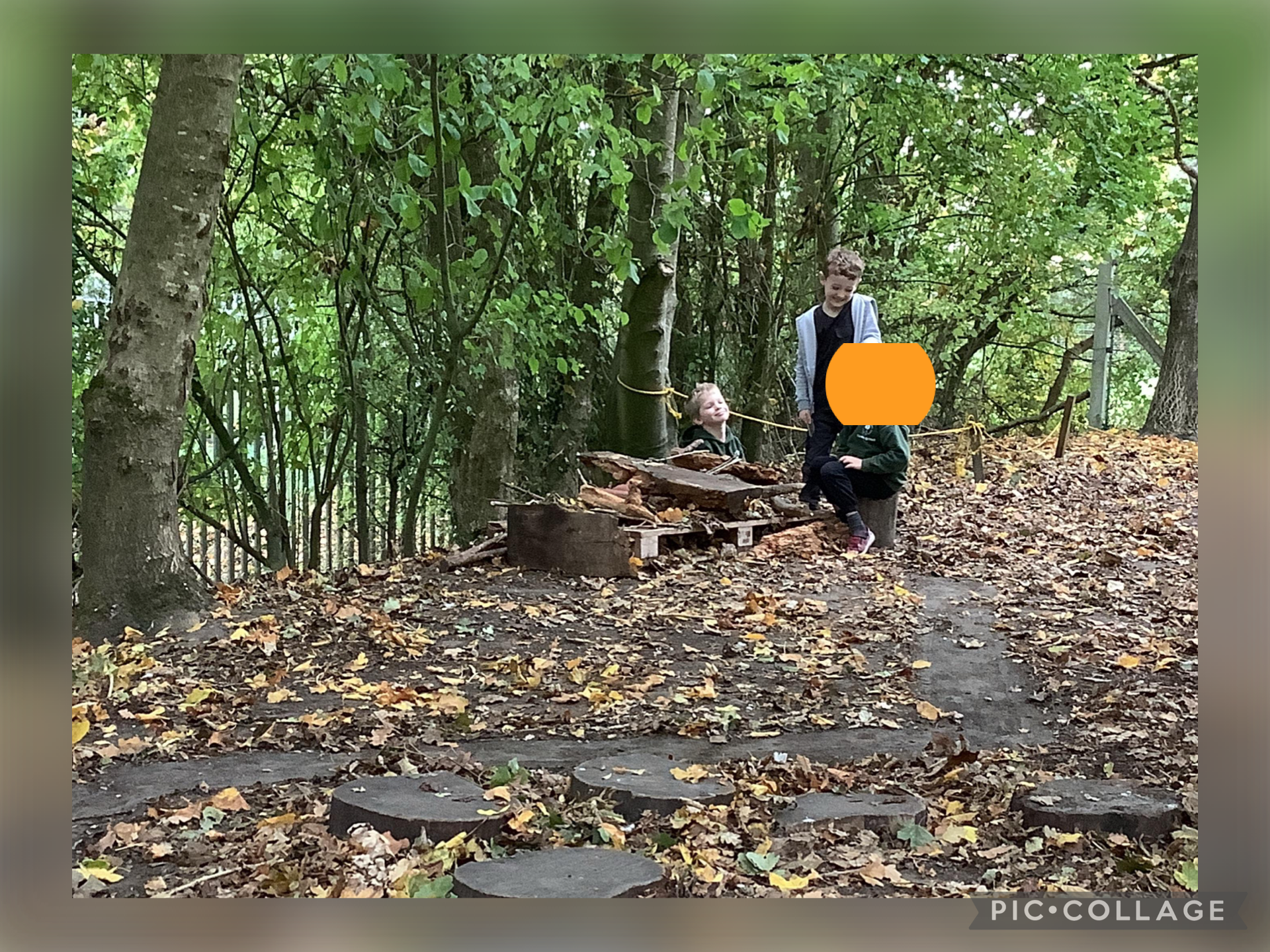 Today in forest school the children worked well together and also created their own tree faces. We had an amazing photographer in charge of the IPad, Ivy. She took pictures of as many children's work as she could. Once children completed todays challenge some children went on a deer hunt, others worked together to create images with the leaves that have fallen from the trees. The rest of children used different equipment and climbed trees. Everyone had lots of fun!