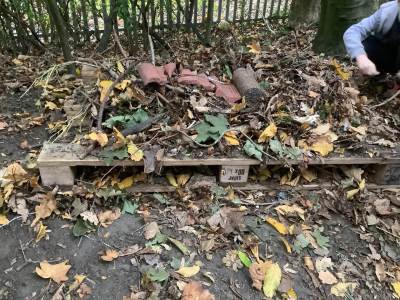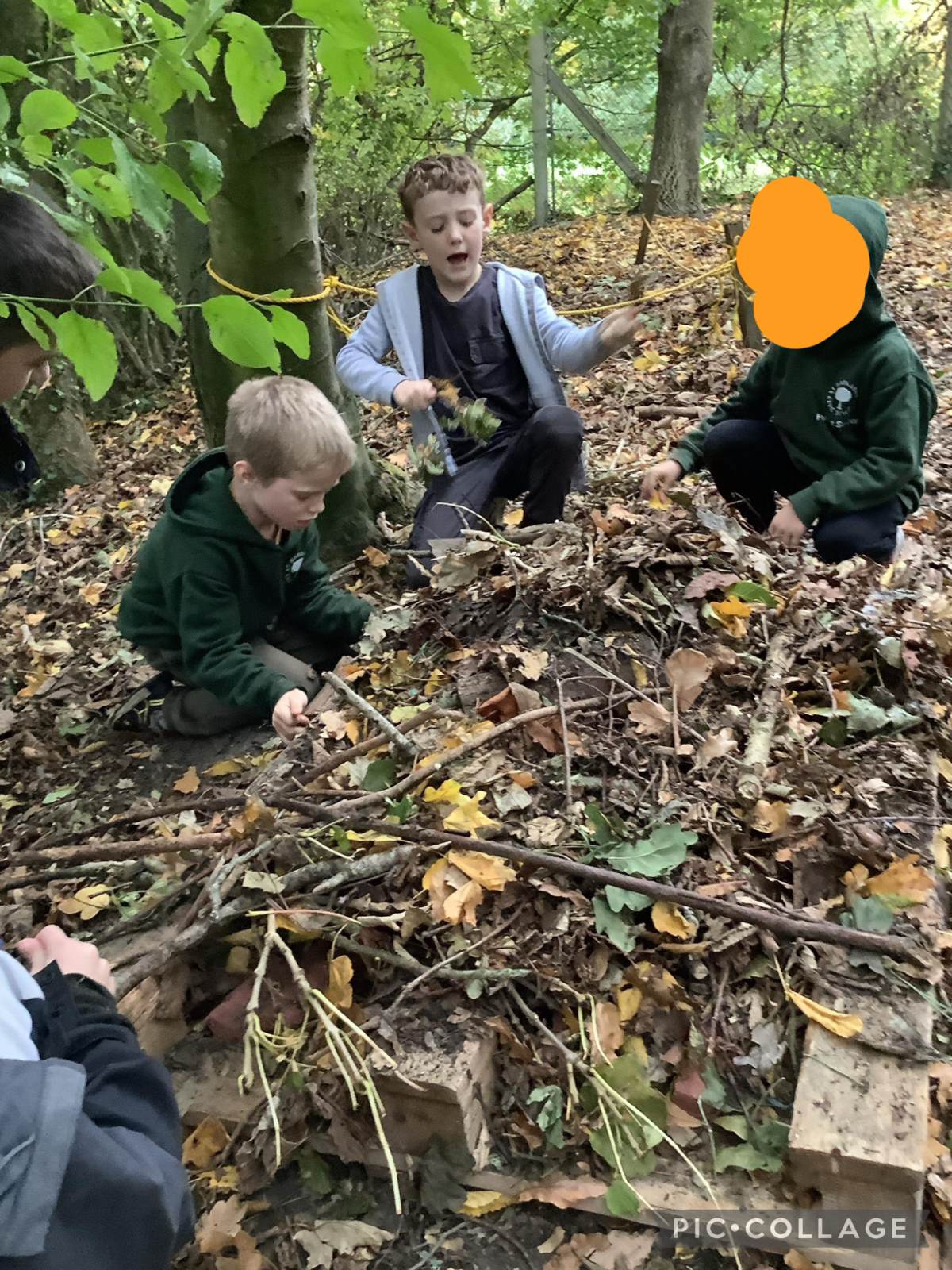 In forest school today the children completed a challenge to build a bug hotel. They all needed to work together on different layers and once their masterpiece was complete they could go and use different equipment within the forest school environment. In today's session I moved some of the equipment to adjust the heights for the children as well as making sure they could access different dens they have been working on.