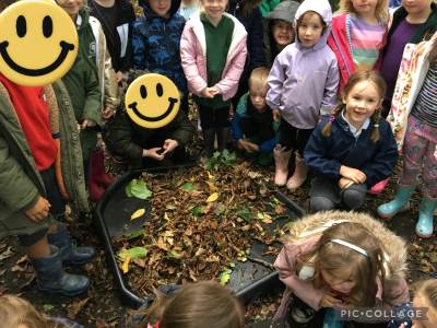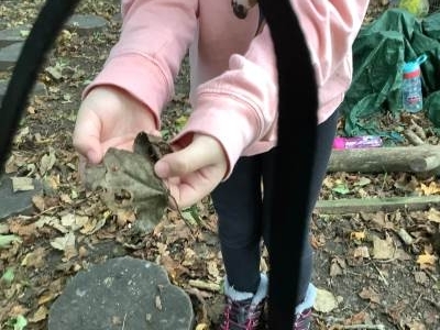 This week in Forest school the children discussed and created an item out of leaves that used to be living but no longer is. Before heading down to the forest the children and I recapped their previous learning about living and non living, after this we then discussed that in nature a lot of things that were living are no longer alive especially as we go into winter months. This enabled the children to discuss how this cycle helps the environment around them. They denied to work together as a whole class and created an amazing work of art. They made one large leaf but out of lots of dead leaves it looked great.